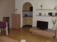 Wohnzimmer mit Essecke , Küchenzeile , TV und Radio